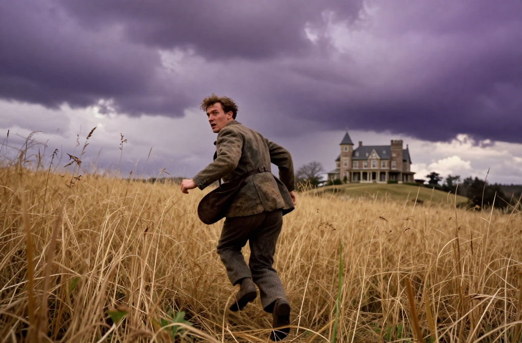 The man ran anxiously across the field, and the mere sight of the hill made him doubt the reliability of the world. It was not the house itself that unsettled…