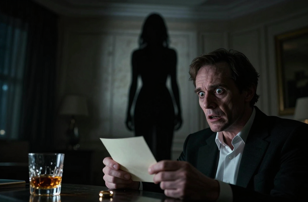 A man sits alone in a silent, dusty room, haunted by betrayal. A trembling note and a wedding ring mark his guilt. A shadow, familiar yet wrong, moves…